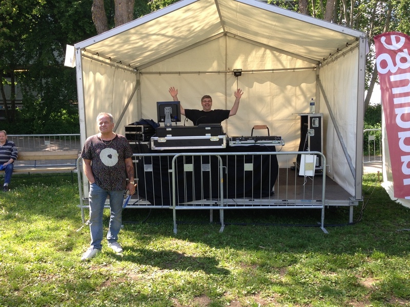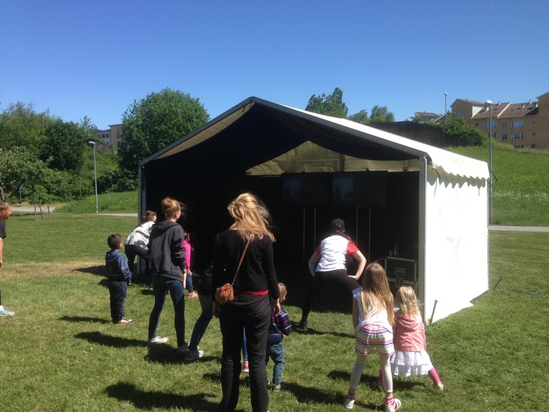 Liten scen med ljudanläggning i väntan på start...