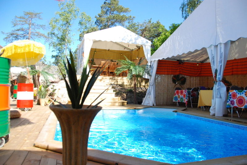 Kan vi göra något fint med väggen som brudparet ska sitta framför? I tavlans mitt syns kyrkan avbildad där brudparet ska gifta sig...