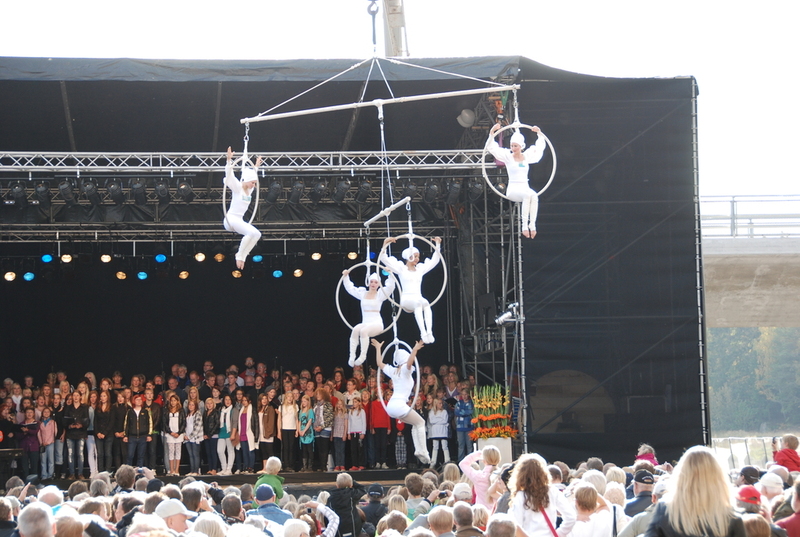 Invigningskvällen var vägbanan och broar vackert ljussatta för premiärturen